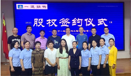 2021年7月23日,是代表著夢想、激情、奮斗的一天!在這一天濟寧一建鋼結(jié)構(gòu)工程有限公司2021年度上半年股權(quán)激勵簽約儀式隆重舉行!2021年在核心團隊的奮斗和協(xié)作下,圓滿完成周期目標。濟寧一建鋼結(jié)構(gòu)工程有限公司的快速發(fā)展,要感謝廣大客戶和朋友的支持與關(guān)心,同時也離不開濟寧一建人才的辛勤付出,一起陪伴走向未來!